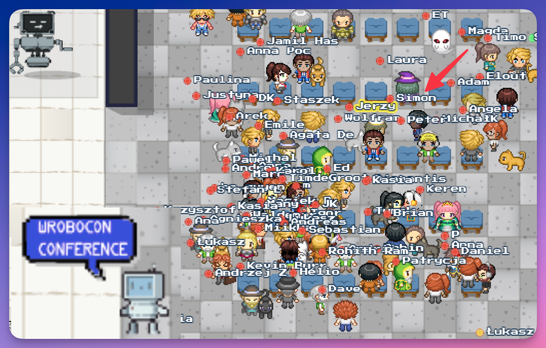 Although ‘only’ online, the conference felt super lively – thanks to the WorkAdventure format, in which all participants moved around a colourfully designed conference area with avatars.